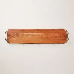 32″ Wooden Decorative Tray With Metal Trim Brown/Brass – Hearth & Hand™ With Magnolia