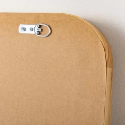 Make any room look more spacious with this 71″ Standing Wood Framed Mirror Natural from Hearth & Hand™ with Magnolia. This rectangular standing mirror brings decorative style and function to your indoor space. It features a deep wood frame for dimensional style. The recessed glass center creates the illusion of extra space, while the natural color coordinates easily with existing decor. This full-length mirror comes with anti-tip anchoring hardware for easy hanging.