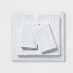 Breathe new life into your master suite or guest bedroom with the Atherton Medallion Comforter Set with Sheets from Threshold™. This comforter set includes a soft comforter decorated with an allover print of floral medallions in distressed light blue over a white background for a touch of soothing style. Also included is a coordinating pillow sham with an identical print, along with matching flat and fitted sheets and a pillowcase featuring a diagonal striped pattern of tiny medallions to create a chic, cohesive look. Made from a soft and lightweight fabric, this comforter bedding set brings you year-round comfort, while its machine-washable design makes for easy care.