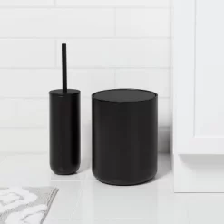 Get rid of everyday clutter with this Metal Waste Can from Threshold™. This metal wastebasket features a swing top design that ensures trash stays concealed, while its small size makes it great for stowing under bathroom sinks, vanity counters or placing in any corner of your room. Featuring a cylindrical silhouette with slightly curved base in a glazed black hue, this swing-top wastebasket adds functional style to your space.