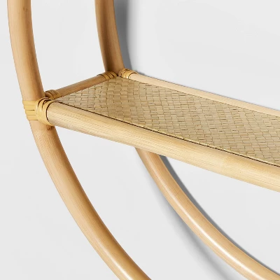 Add a little organization to your little one’s room with this Rattan Round Shelf from Pillowfortâ˘. Constructed from rattan for effortless style and warm texture, this decorative wall shelf features a round silhouette with shelves to add just the right touch of interest to their room decor. The natural finish complements a variety of decor aesthetics, and it features two shelves for displaying decorations or for storing small items to keep them neat and tidy.