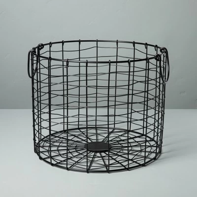 Bring a versatile accent to your home decor with this Round Wire Storage Basket with Handles from Hearth & Hand™ with Magnolia. Featuring a wired construction, this metal storage basket helps you see through your essentials with ease. This black storage basket mixes well with your decor whether you organize your books, blankets or any other items. Easy to move with the built-in handles, this round storage basket can displayed along your entryway, living room or any other area.