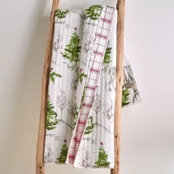 The Sleigh Bells Reversible Quilted Throw by Levtex Home is inspired by whimsical winter wonderlands. Offered in black, greys and white, this design will immediately transform your bed, couch or favorite chair. Made with a durable cotton/poly blend, this reversible throw features deer, Christmas trees and holly in black and greys on a white ground on the one side, reversing to grey and white plaid. Snuggle up under this versatile throw while you watch the lights on your Christmas tree twinkle, or tell your favorite holiday stories.