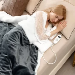 - 【Dual Use & Comfy Fabric】: Made of super soft velvet and fleece, our heating blanket is very smooth and skin-friendly, and you can enjoy the ultimate relaxation no matter which side you use. Moreover, the fluffy material has high heat retention, which will keep you warm at all times.