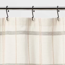 You’ll love the contemporary look this Woven Modern Plaid Shower Curtain from Threshold™ gives your bath space. Showcasing a plaid pattern in black woven on an ivory background, this shower curtain brings modern flair to your bathroom decor, while effortlessly blending with a variety of decor styles and color schemes. Crafted from 100% cotton, this decorative shower curtain features a buttonhole top for easy installation and added convenience.